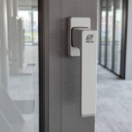 Montowany w eleganckim, całoszklanym panelu DCS czytnik linii papilarnych Schüco Fingerprint Easy oferuje coś więcej niż tylko funkcję biometrycznego dostępu nowej generacji. Rozwiązanie sterowane aplikacją na smartfon zostało wyposażone w nowe, inteligentne funkcje, takie jak np. wysyłanie powiadomień i zdalne otwieranie drzwi.